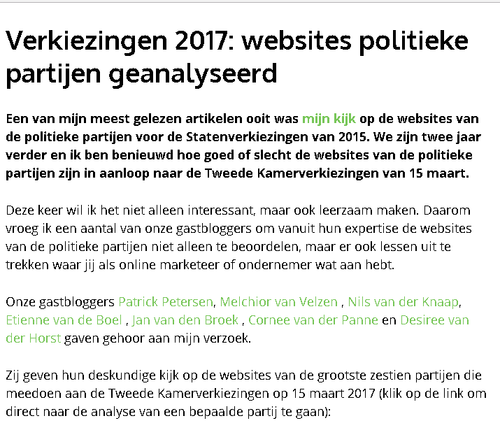 Op EMERCE.nl mijn beoordelingen van de campagnesites van de politieke partijen #TK2017